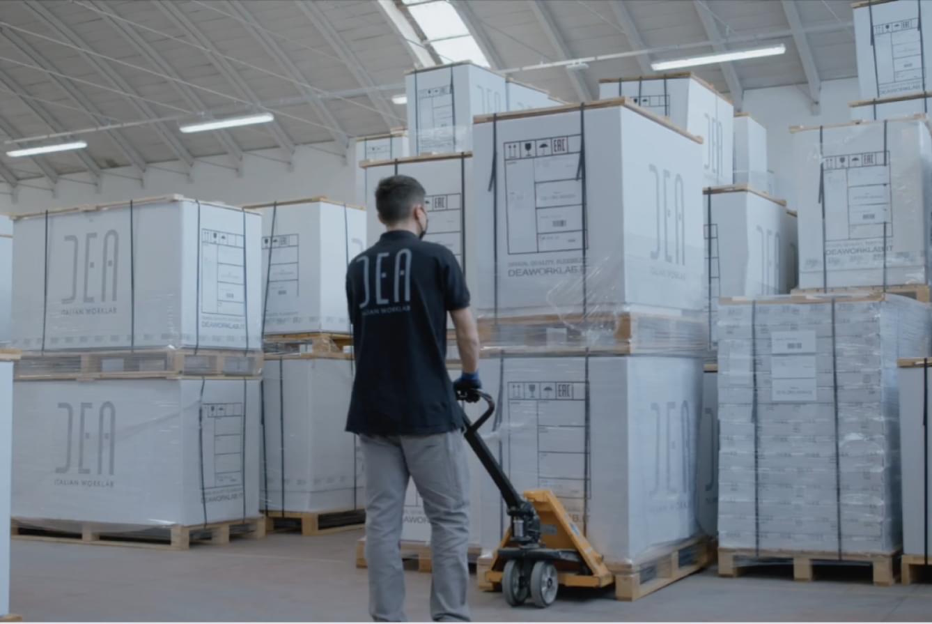 In der neuen DEA-Fabrik wurde ein großes Lager für die Lagerung von Rohstoffen eingerichtet, das es uns ermöglicht, unsere Möbel in völliger Autonomie herzustellen.