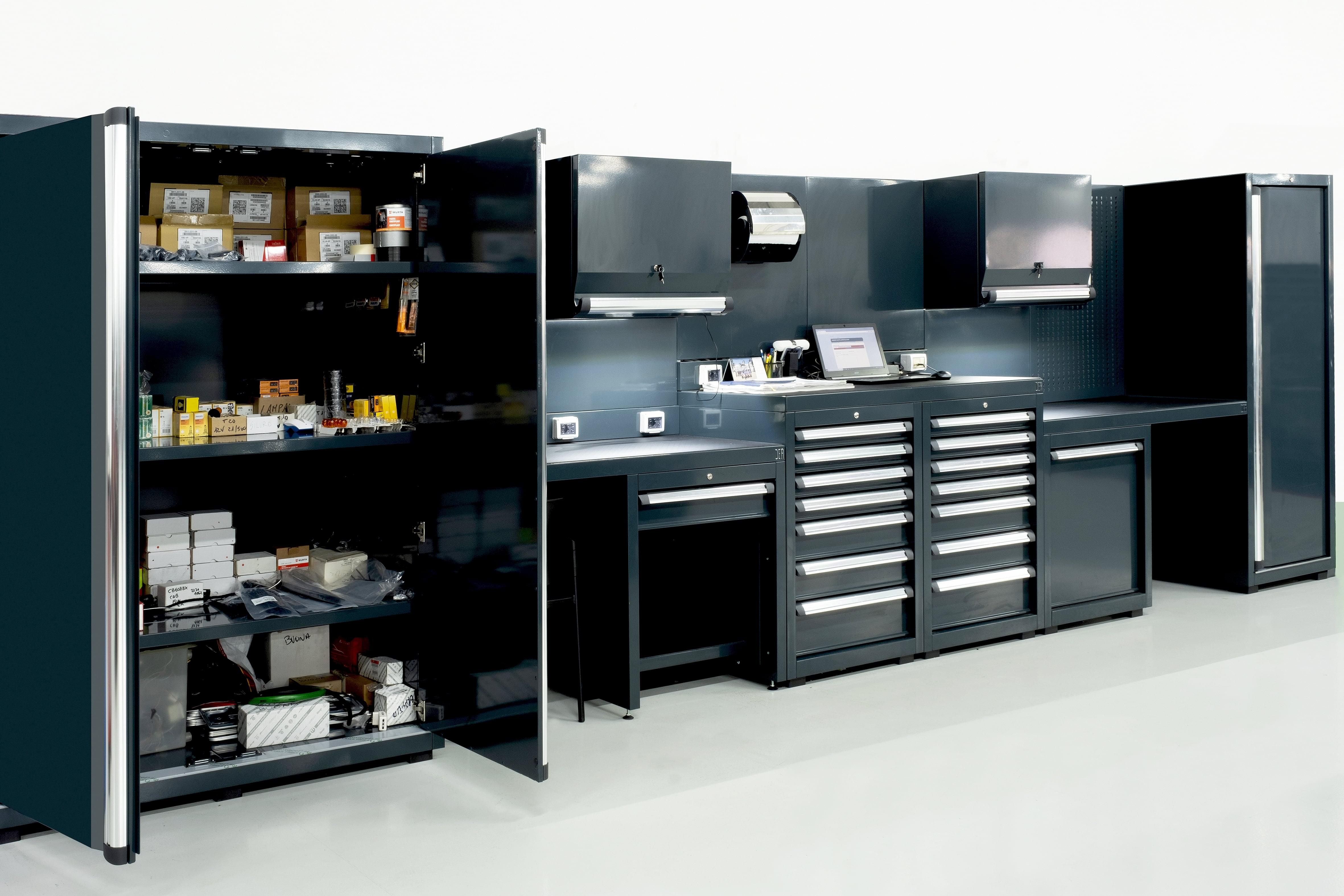 Unter unseren Industrieausstattungen sind Schubladenschränke zweifellos unser Vorzeigeprodukt. Sie sind kompakt und robust, in einer Vielzahl von Höhen und Größen erhältlich und verfügen über praktische Schubladen zur Aufbewahrung von Kleinteilen, Kleinwerkzeugen und Messgeräten sowie Dokumenten oder Akten.
