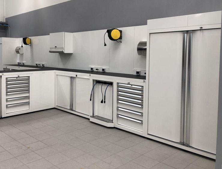 Die Werkstätten mit Einrichtungen von ausgesuchtem Design, jedoch gleichzeitig haltbar, zu bereicher...