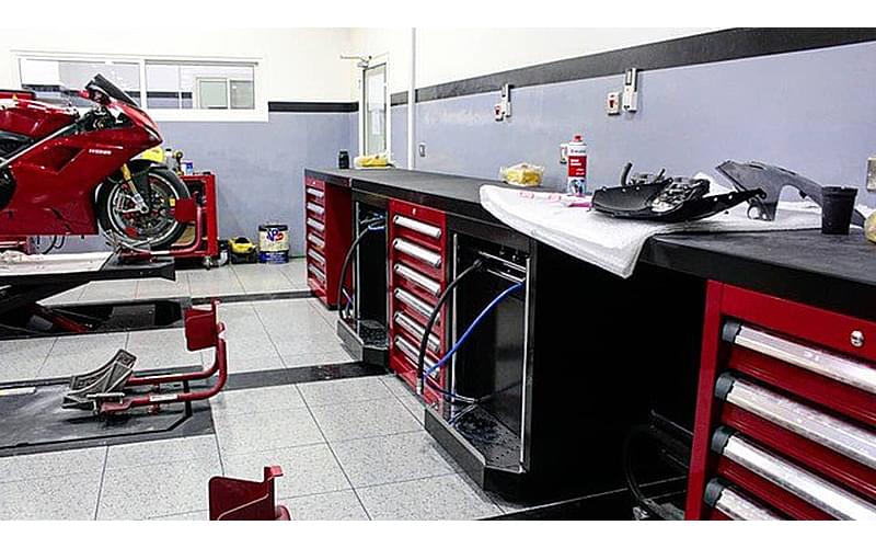 The installation stands out for its overall beauty but also for the high level of customisation: the modules, in fact, alternate the classic DEA furniture colour – anthracite grey – with ruby red, evoking the style of the other equipment in the service centre, for example, the lifting platforms.