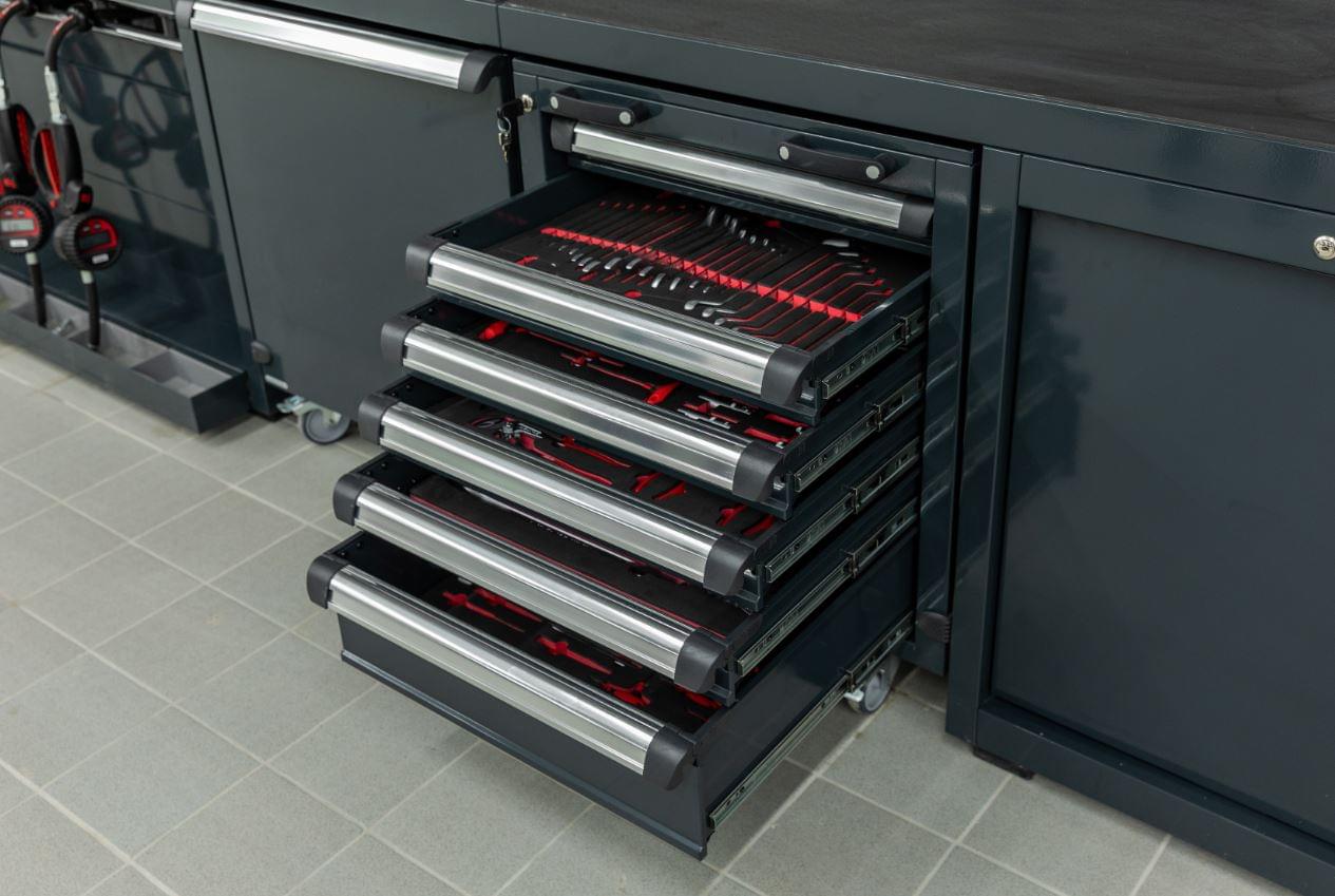 All drawers can be equipped with a kit of utensil holders, trays, dividers and mats, all of which help ensure high levels of organisation and efficiency in your workshop and make day-to-day operations easier.