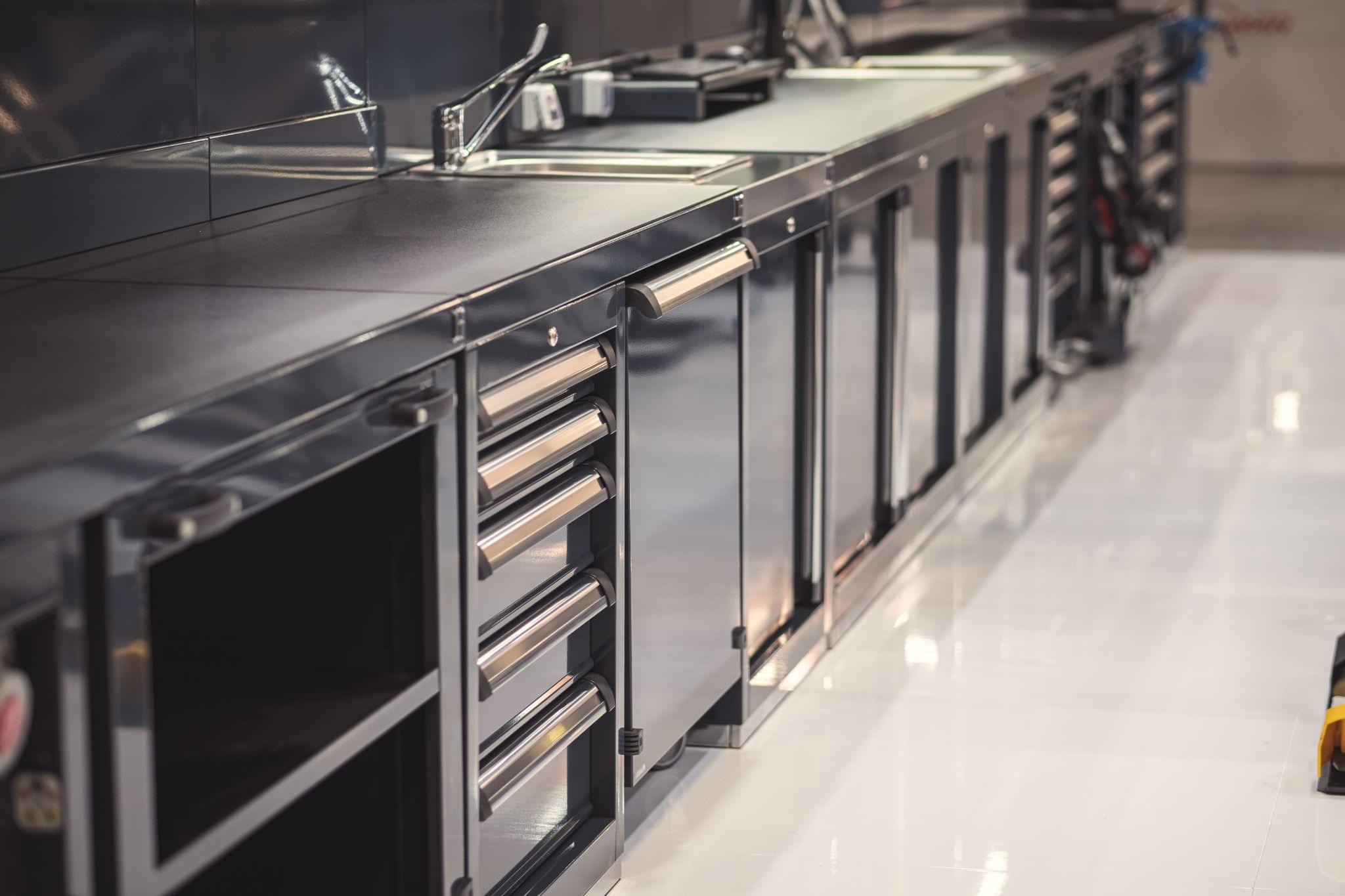 - Carrelli portautensili per industria: moduli dotati di ruote, disponibili con cassetti chiusi o ripiani aperti, ideali per avere strumenti e utensili sempre a portata di mano;
